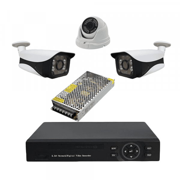 پکیج دوربین مدار بسته 3 عددی ارزان شامل یک دستگاه دی وی ار، دو عدد دوربین بولت، یک عدد دوربین دام و یک عدد پاور سوئیچ تغذیه 10 آمپر می شود. ویژگی های این پکیج: